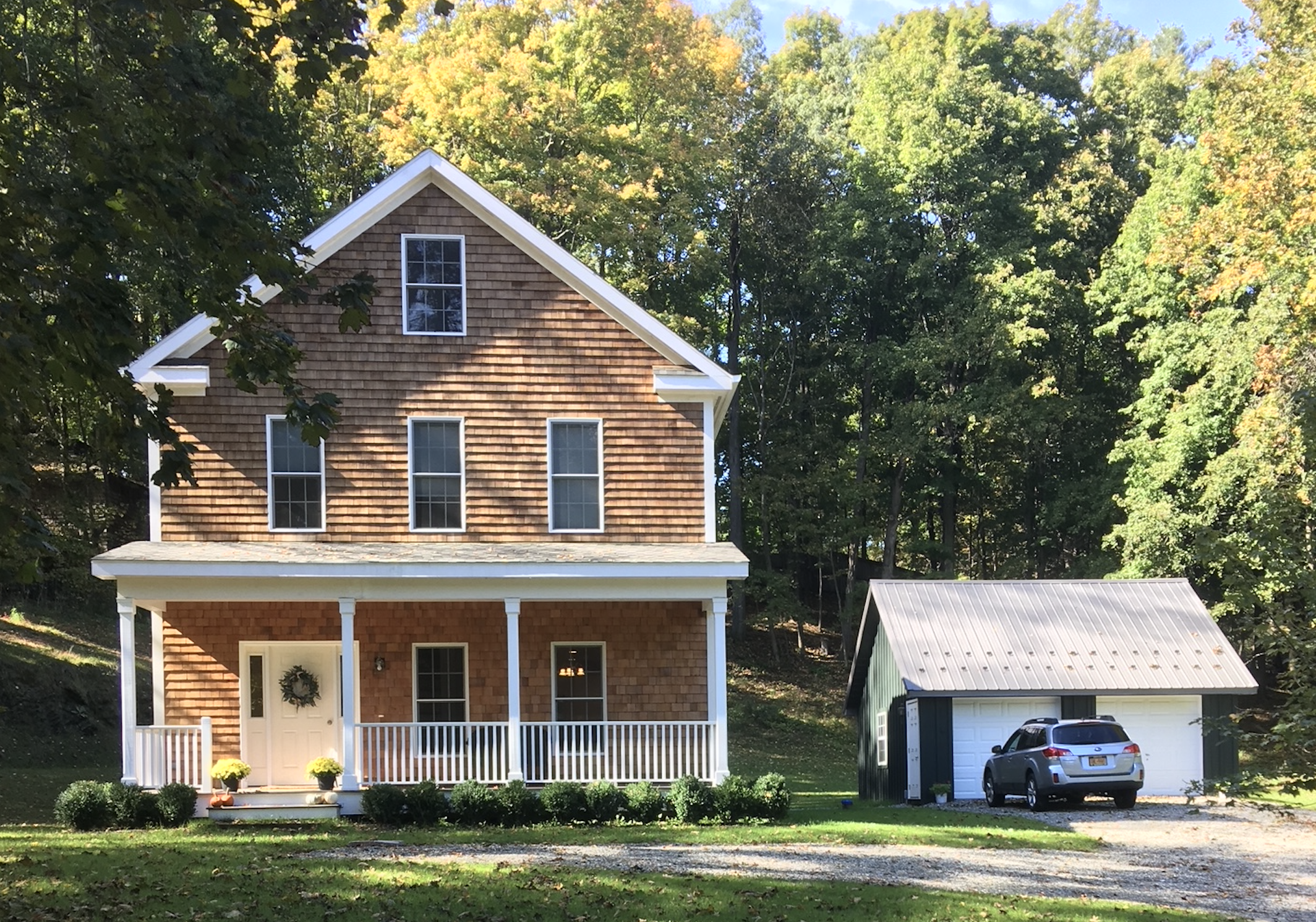 Kingston purchased land and built 393 Altamont Road in Millbrook NY. Modular construction was used and design inspiration came from houses in the downtown Millbrook area, including front porch and cedar shake siding.